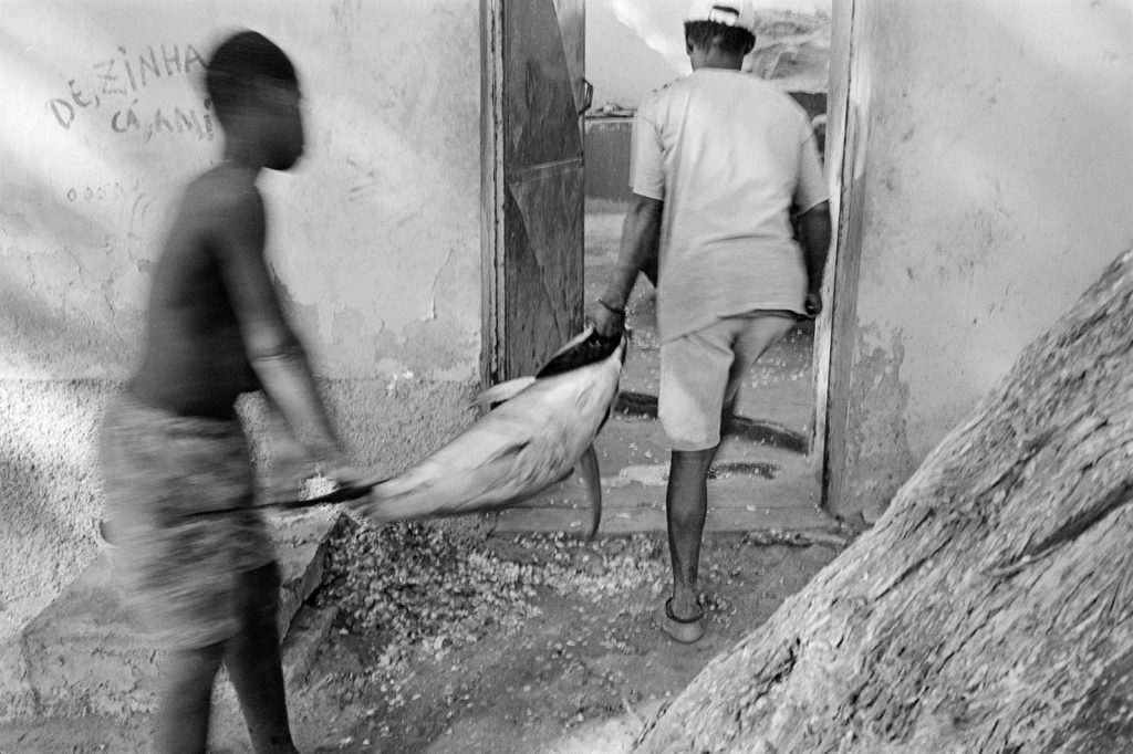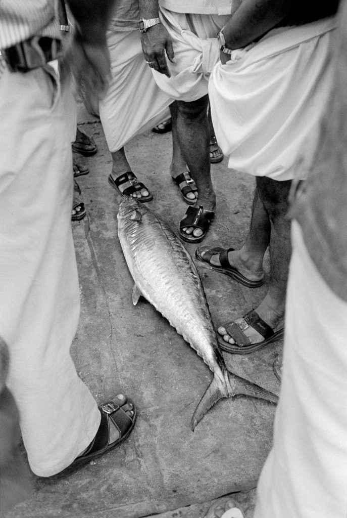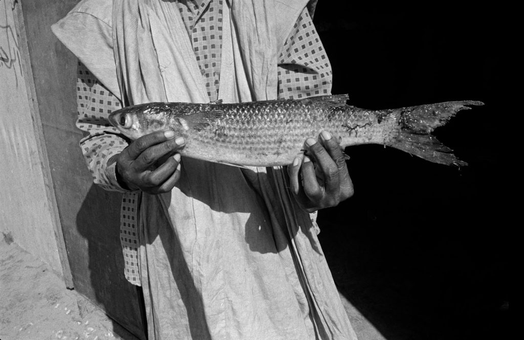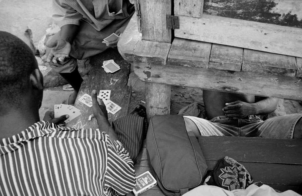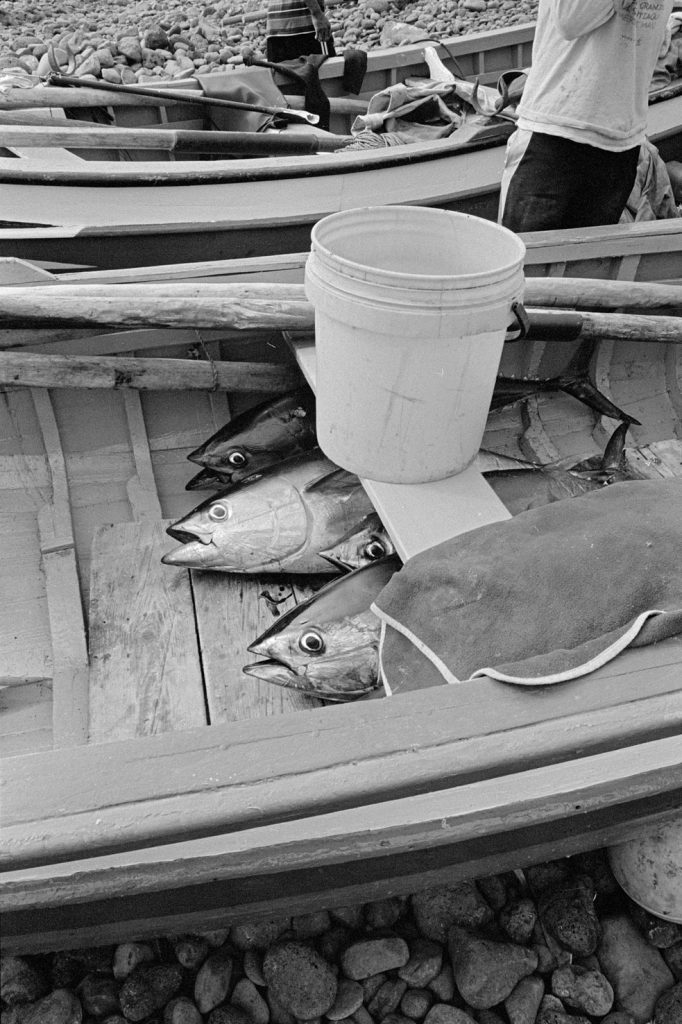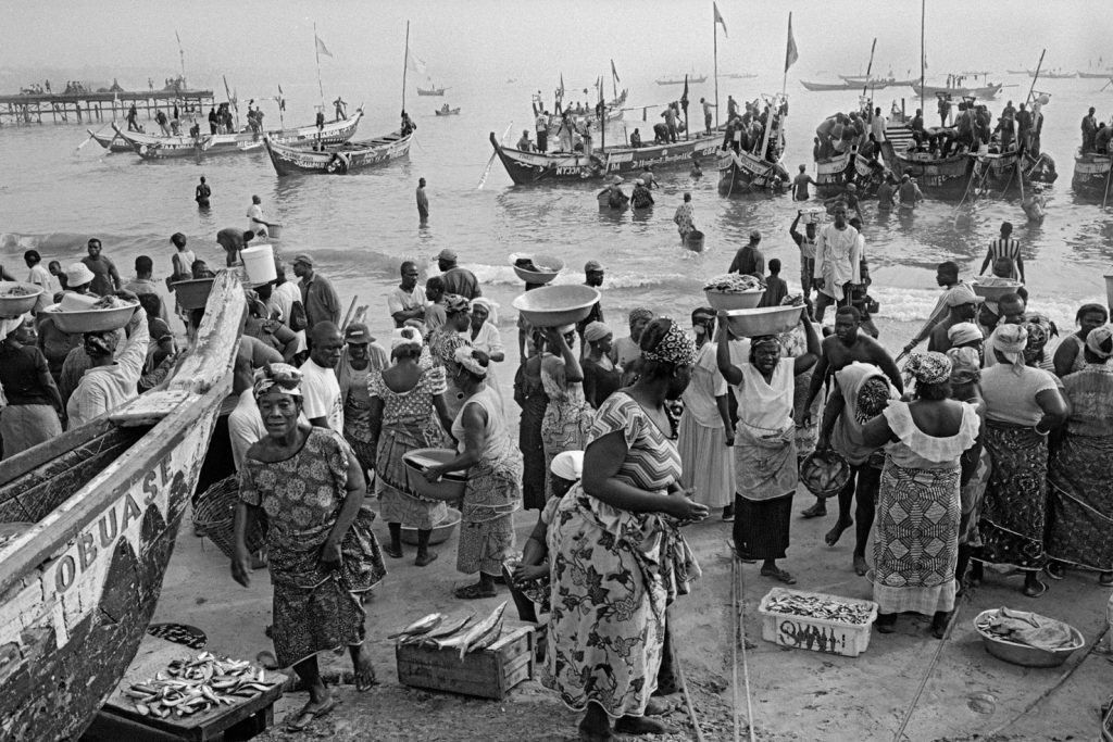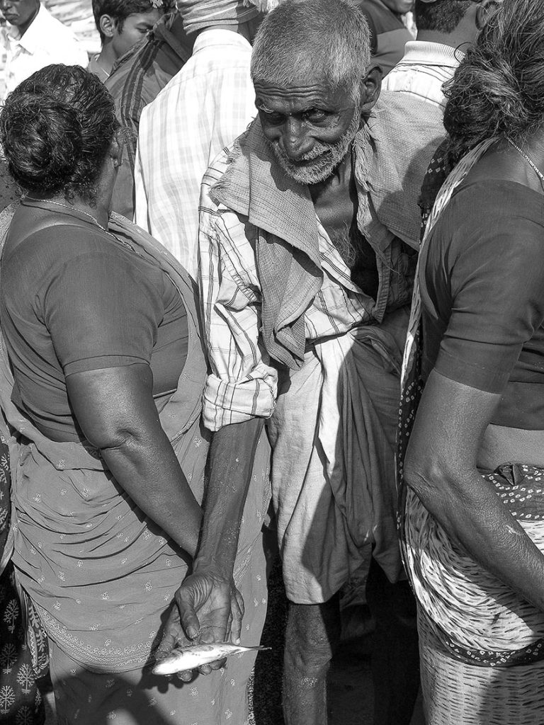 « Le poids pas bon pour l’homme », me dit celui qui refusait que je le photographie portant, amortie par une couronne de mousse sommairement posée sur sa tête, un bac de 70 kgs de sardines, d’un plastique aussi triste et gris que fonctionnel. Le cou et le dos brisé, ses jambes ne le portant plus, cet homme cassé, le corps usé par tant de courses, se préservait d’une dignité perdue.