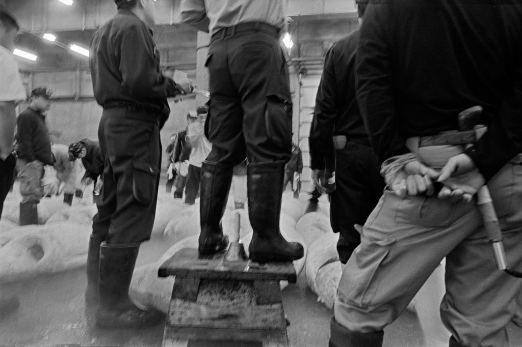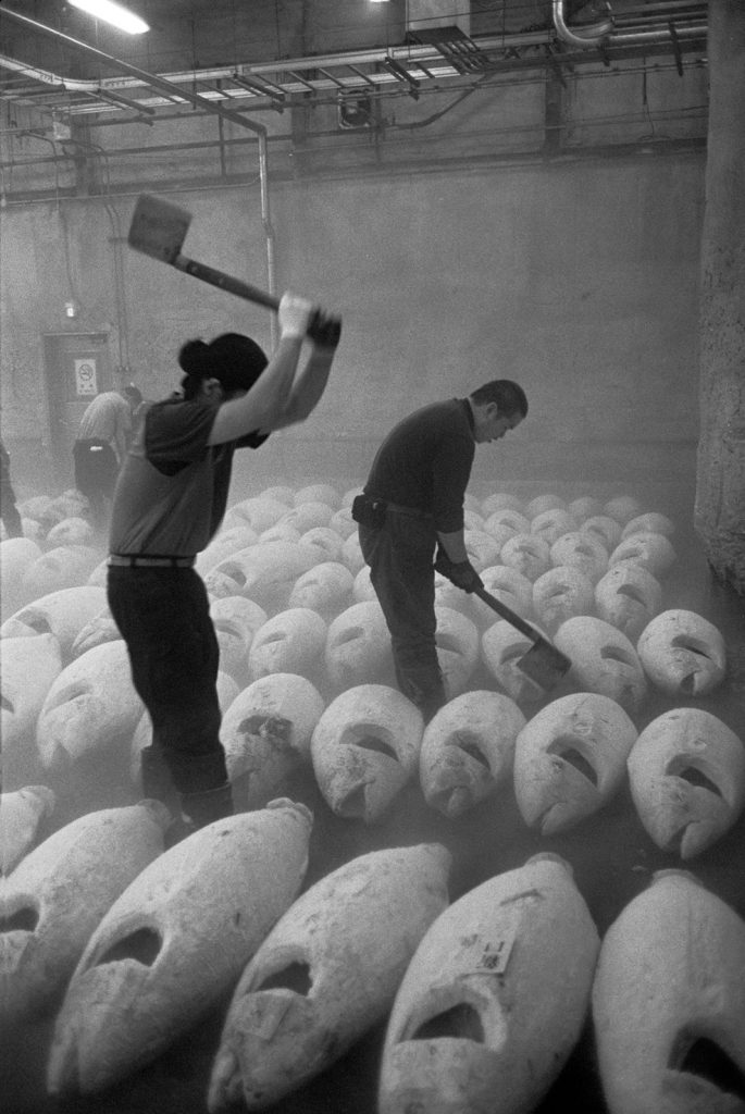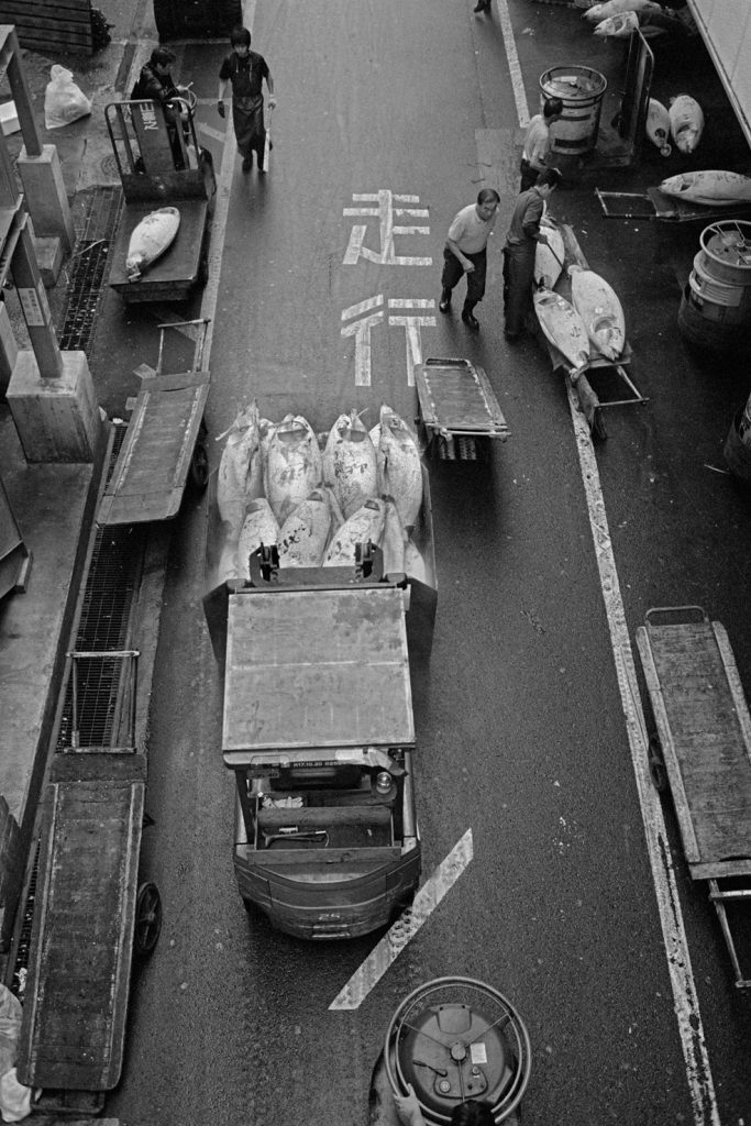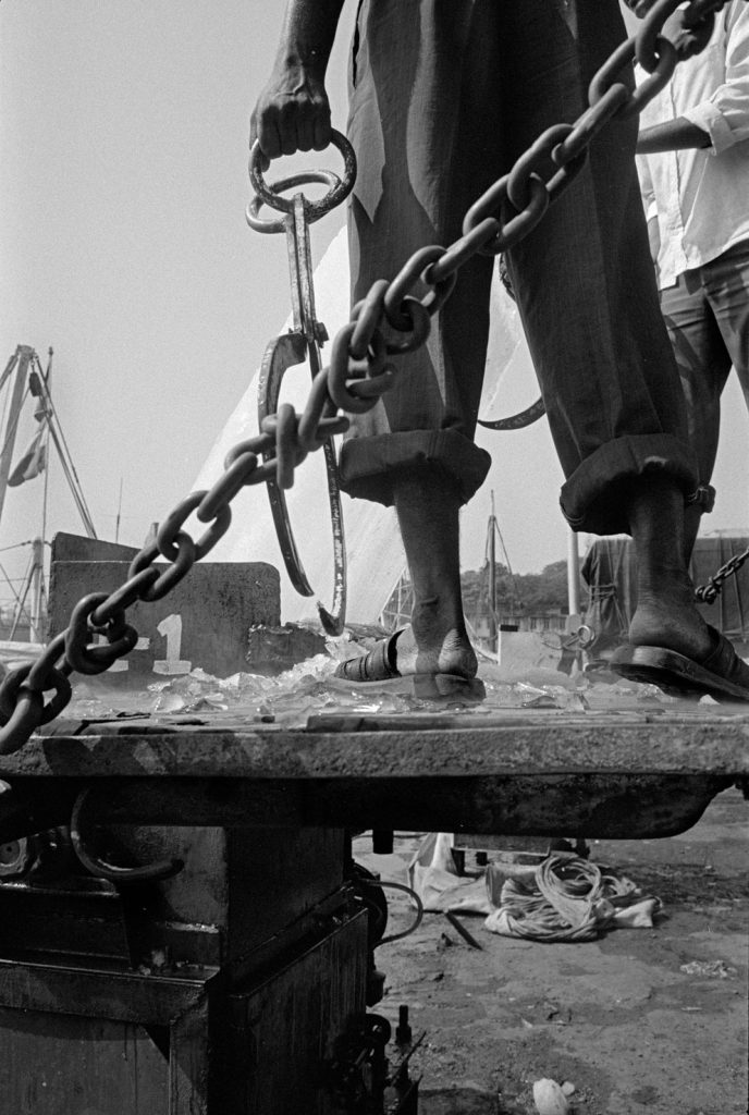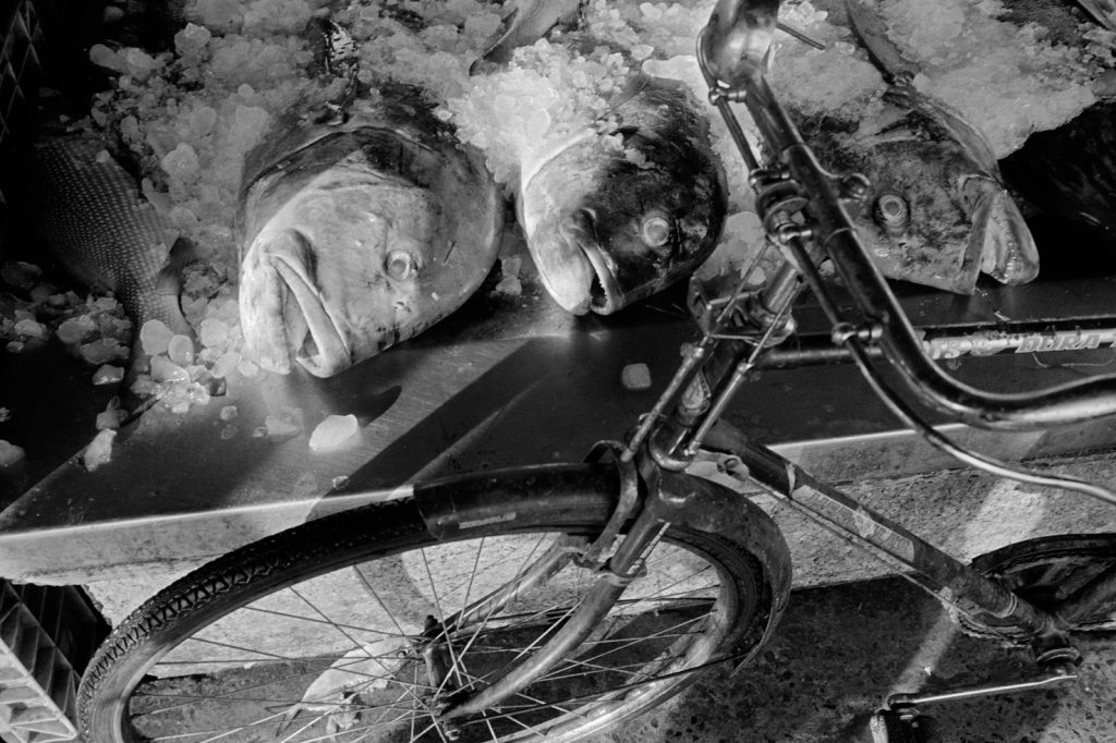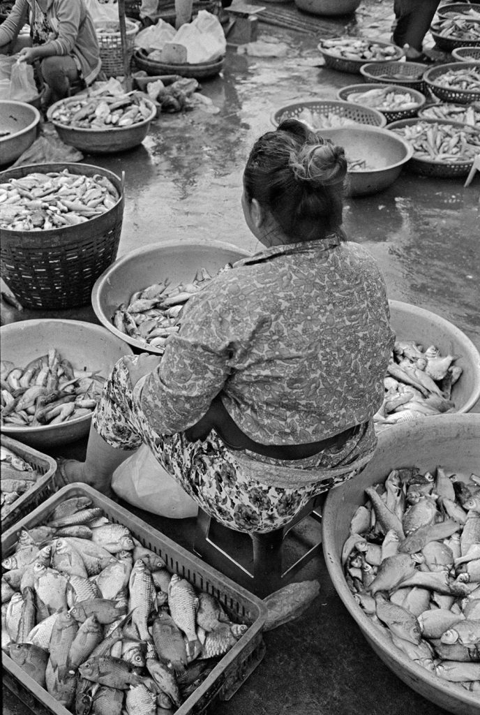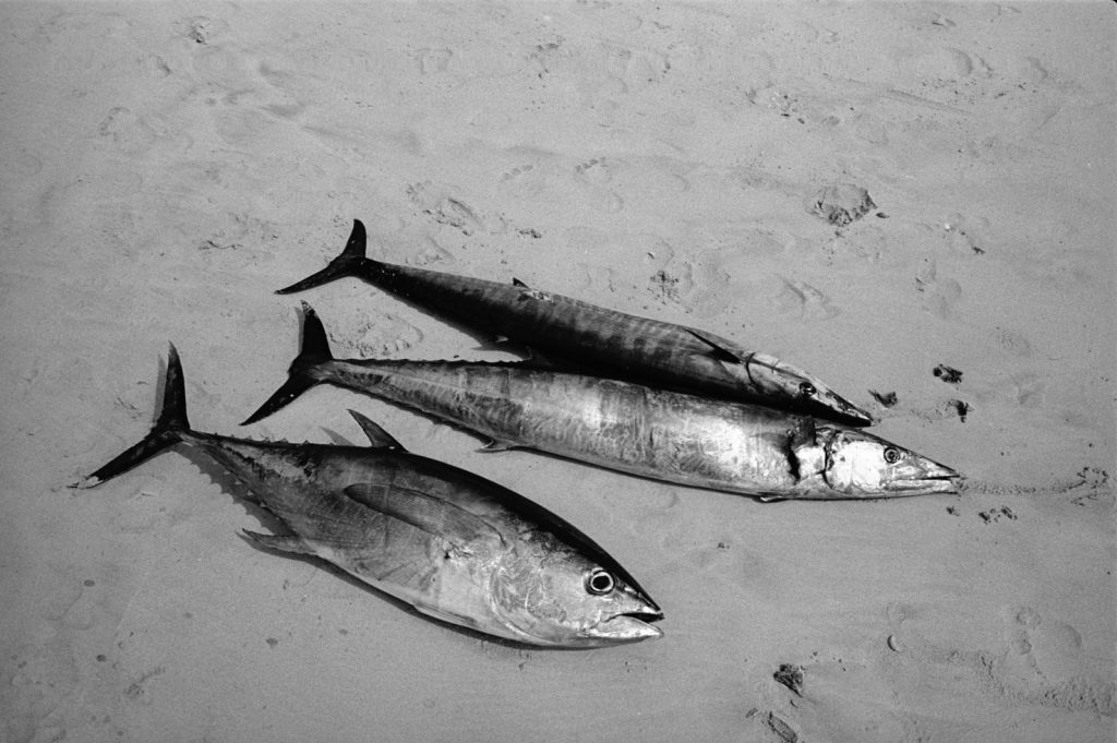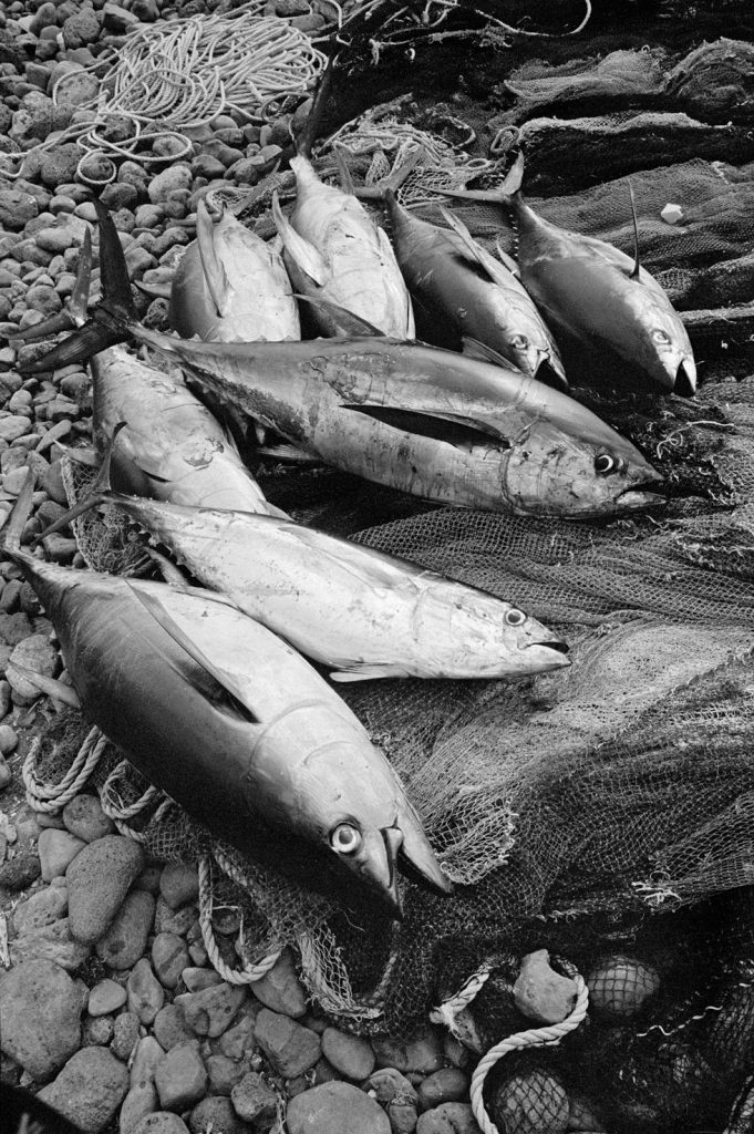 « Le poids pas bon pour l’homme », me dit celui qui refusait que je le photographie portant, amortie par une couronne de mousse sommairement posée sur sa tête, un bac de 70 kgs de sardines, d’un plastique aussi triste et gris que fonctionnel. Le cou et le dos brisé, ses jambes ne le portant plus, cet homme cassé, le corps usé par tant de courses, se préservait d’une dignité perdue.
