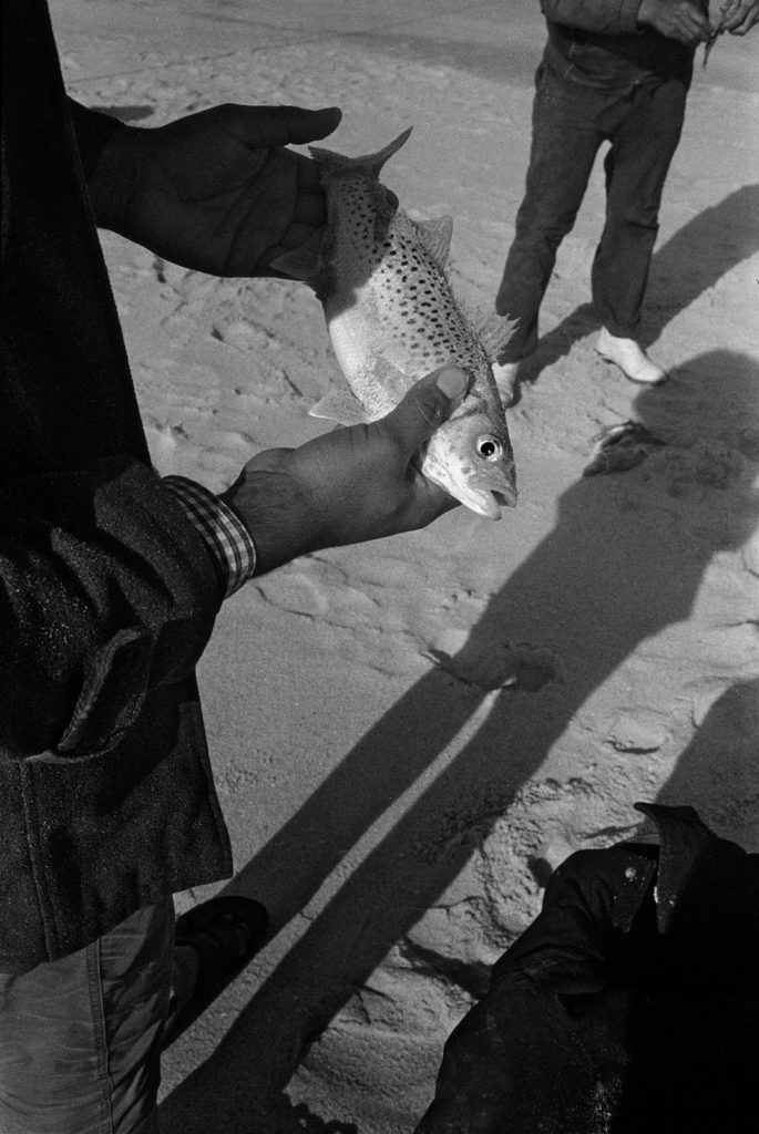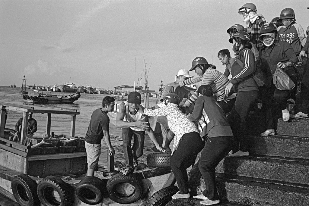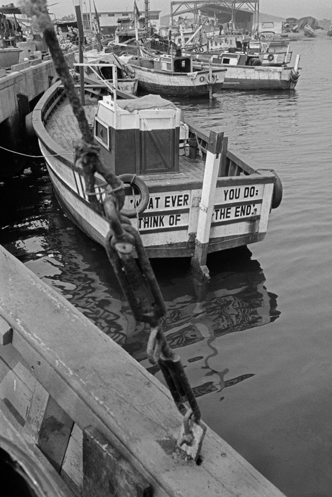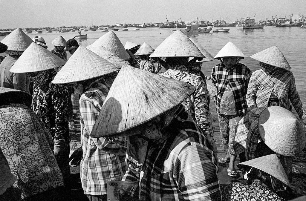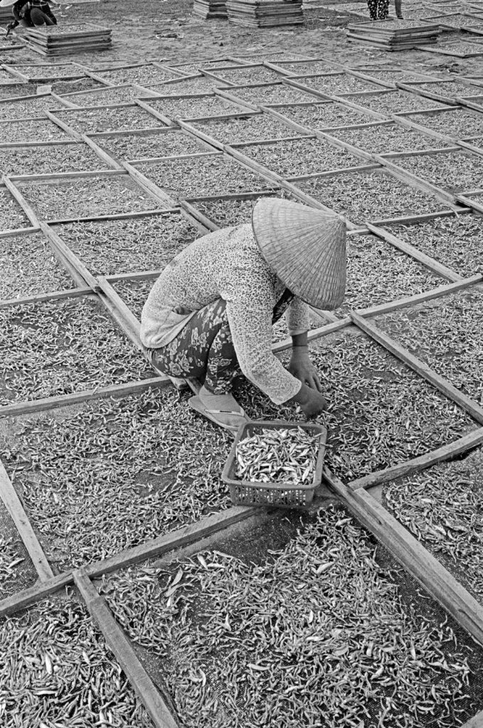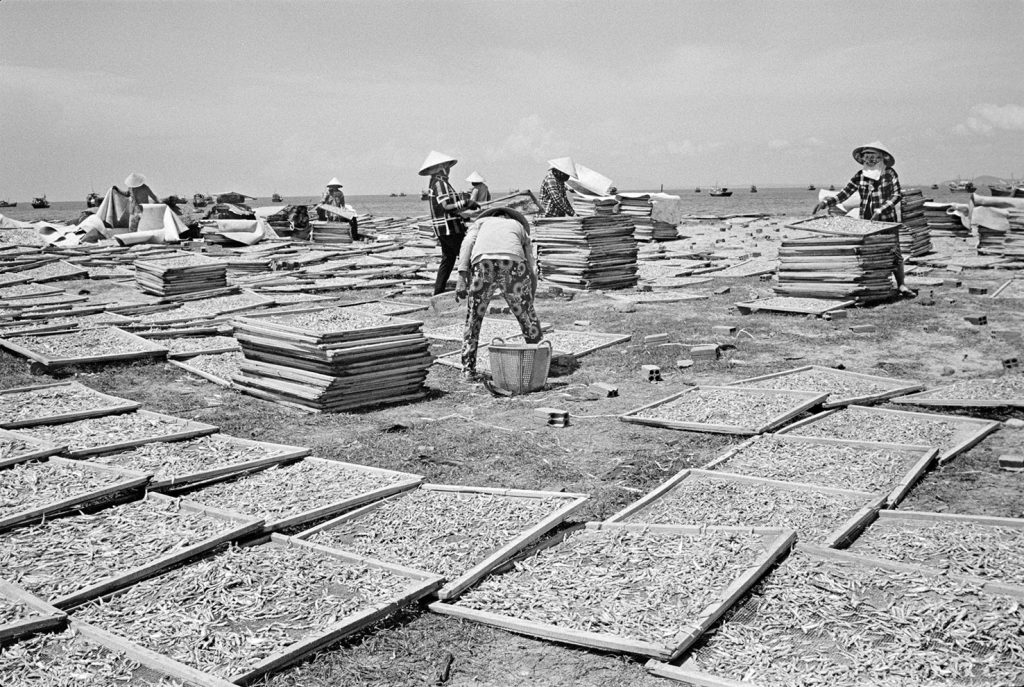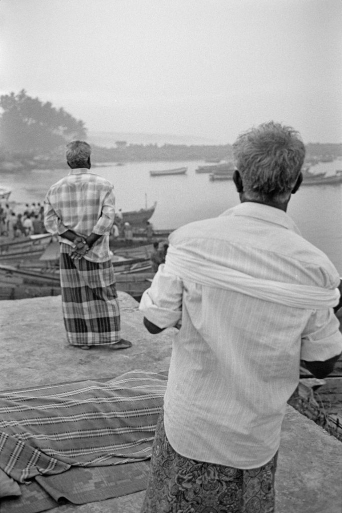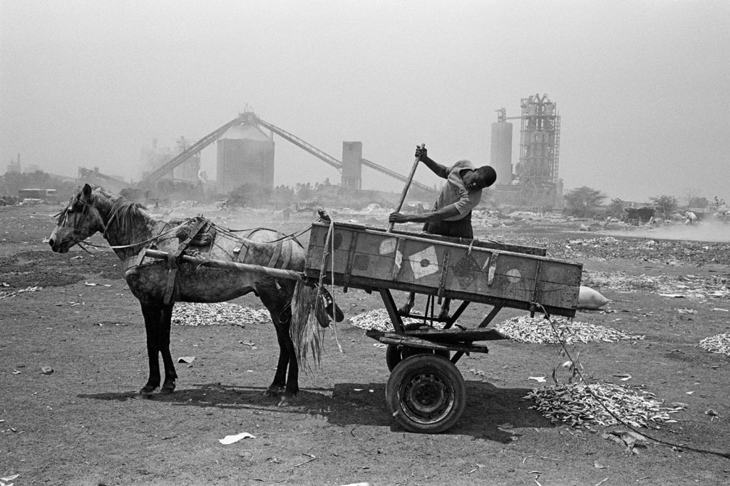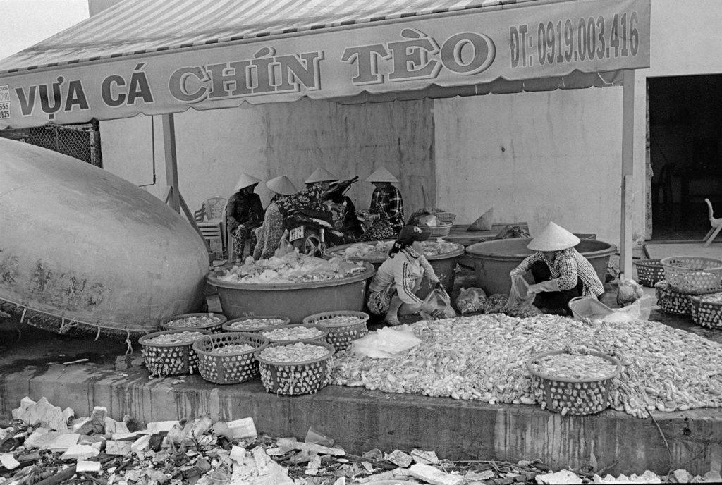 Un village fantôme, bidonville de bord de mer, d’un passé récent est venu se poser sur cette fin de terre. Les pêcheurs ont bâti des abris de fortune pour se protéger des vents qui les saoulent et vivent sous des toits de vieux plastiques amalgamés et de filets en fin de vie. Au sol, déchets et immondices courent jusqu’au loin, là où la ligne des barques danse sur l’horizon.
