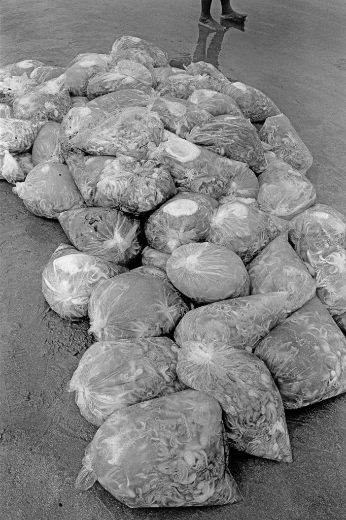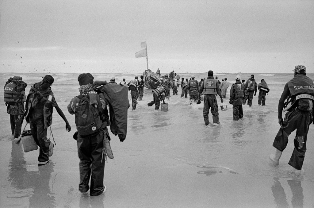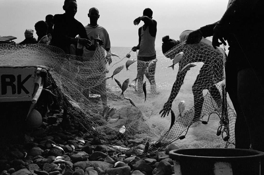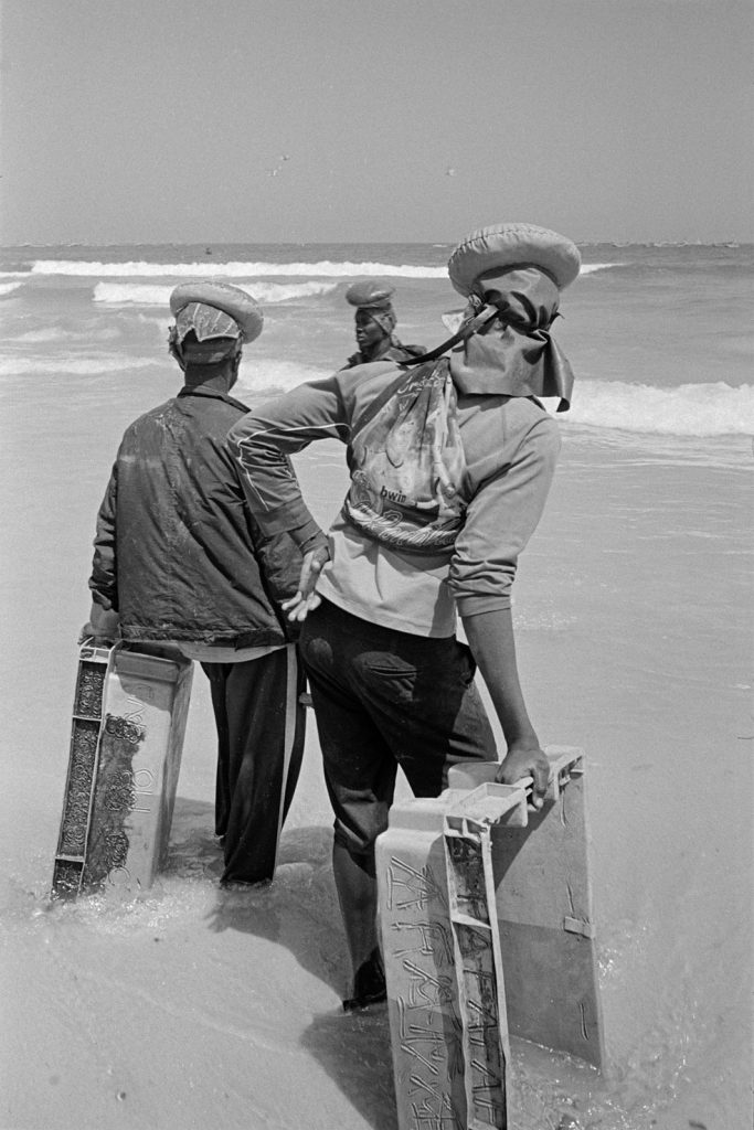 Ils sont des centaines sur ces plages à courir comme des damnés, se jetant à l’eau dès l’arrivée des pirogues pour remplir, au plus vite, leur bac de poissons. Ils passeront devant un premier pointeur sur le bas de la plage puis devant un deuxième sur la fin de leur course ; c’est ainsi que sont comptées leurs rondes, payées du plus petit euro, quand les deux pointeurs se seront mis d’accord sur le nombre de passage de chacun.